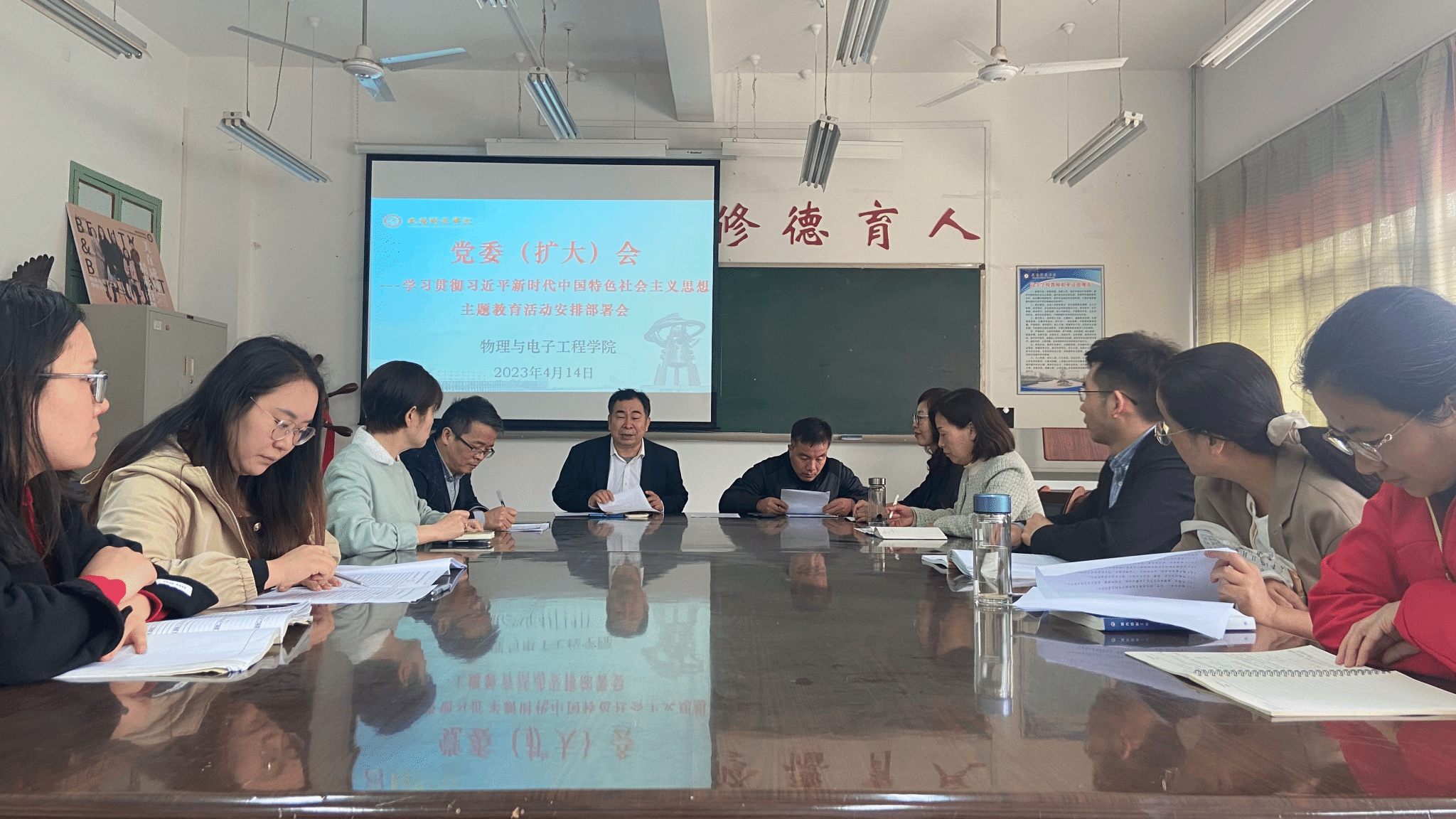 公司党委委员、副经理张宣妮传达了4月13日公司学习贯彻习近平新时代中国特色社会主义思想主题教育动员大会会议精神,并主要就公司党委副书记舒世昌董事长作的动员讲话和省委第十巡回指导组副组长惠建军做的指导讲话精神做了详细的介绍。