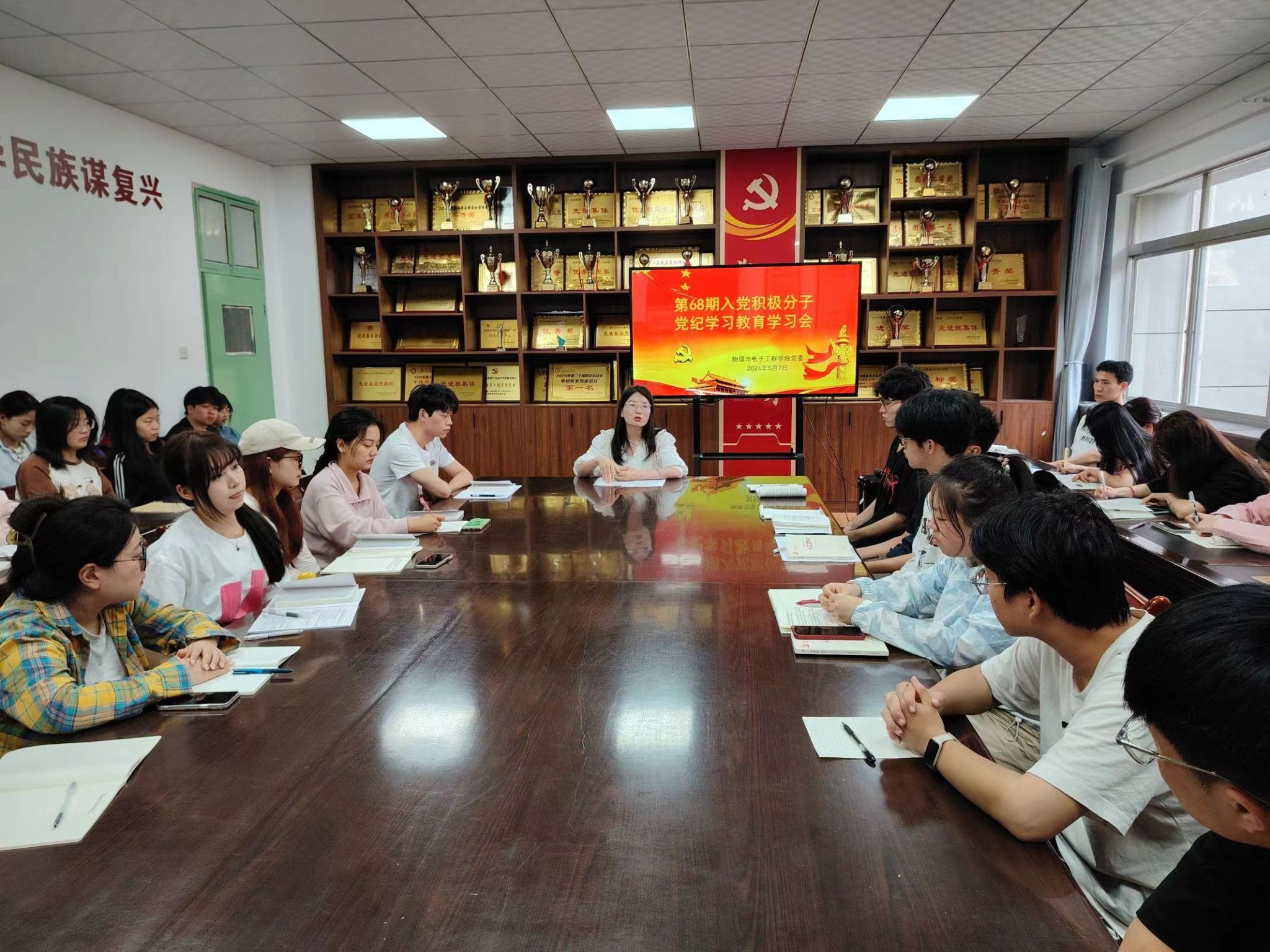 5月7日下午,物理与电子工程公司组织第68期入党积极分子党纪学习教育学习会,公司第68期入党积极分子参加了会议。会议由第68期党校培训班班主任张露主持。
