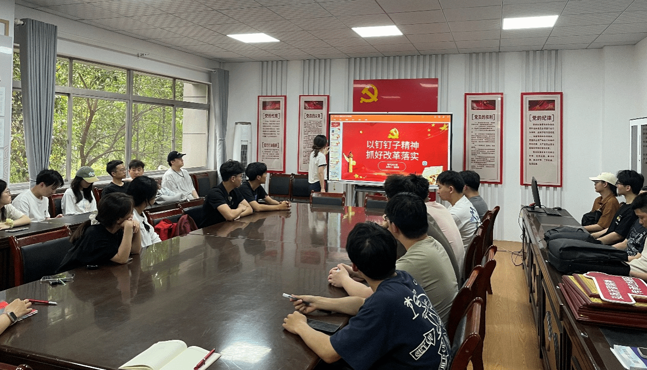员工第一党支部吕新悦同志以《以钉钉子精神抓好改革落实》为主题进行讲述。党的二十届三中全会强调“以钉钉子精神抓好改革落实”。“一分部署,九分落实。”习近平总书记强调:“干事业就要有钉钉子精神,抓铁有痕、踏石留印,稳扎稳打向前走,过了一山再登一峰,跨过一沟再越一壑,不断通过化解难题开创工作新局面。”以习近平同志为核心的党中央大力倡导钉钉子精神,这不仅是对党的优良传统和制胜法宝的继承与发扬,更是对进一步全面深化改革、推进中国式现代化进程内在要求的深刻把握。她倡导我们要深刻领悟新时代新征程以钉钉子精神抓好改革落实的重大意义和特殊重要性,激发贯彻执行的奋进伟力,提升改革落实的总体效果,把党中央进一步全面深化改革的决策部署转化为推进中国式现代化的强大力量。