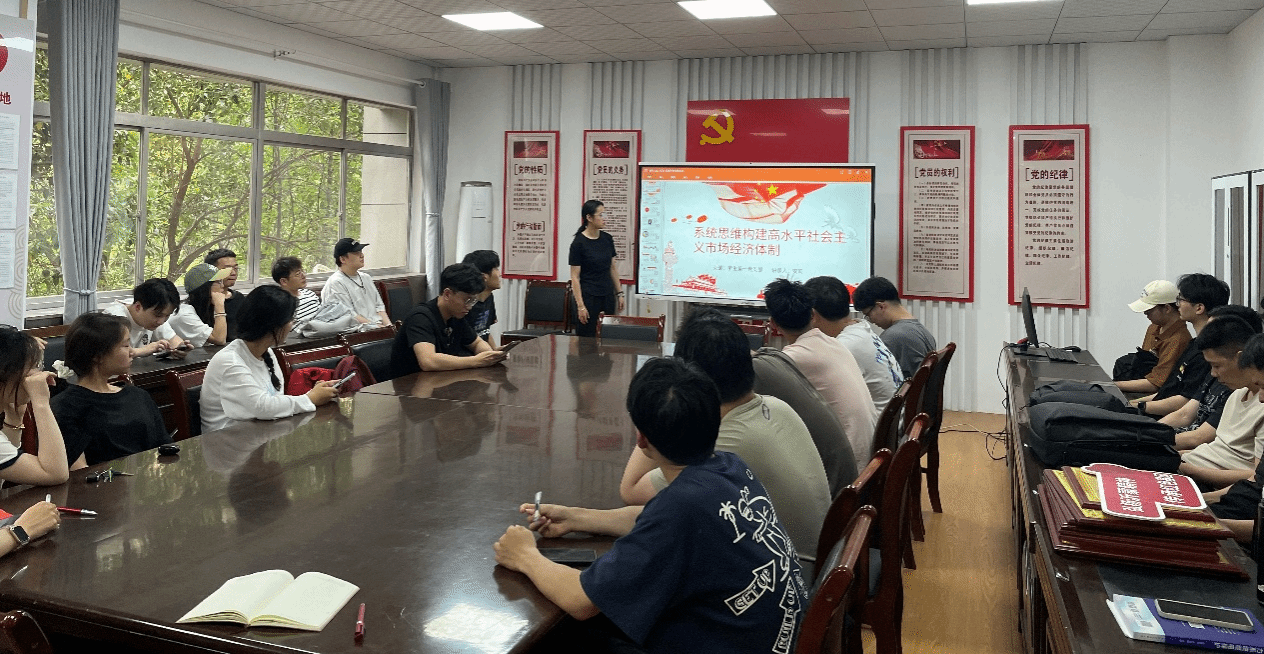 员工第一党支部安莉同志以《系统思维构建高水平社会主义市场经济体制》为主题进行讲述。习近平总书记指出:“提出建立社会主义市场经济体制的改革目标,这是我们党在建设中国特色社会主义进程中的一个重大理论和实践创新”。党的二十届三中全会《决定》提出“到2035年,全面建成高水平社会主义市场经济体制”。全面建成高水平社会主义市场经济体制,离不开高水平经营主体的塑造、高效率市场机制的构建、高标准市场体系的建设。她总结说到:我们必须坚持系统观念、注重系统集成,从经营主体、市场机制、市场体系等方面协同发力、整体推进。
