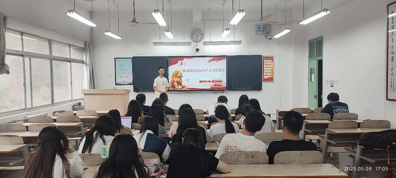 员工第三党支部安佳乐以推动绿色发展和生态文明建设为题,讲述如何坚持绿色发展理念,生态文明建设,倡导绿色生活方式以及当代绿色发展挑战与对策,明确了新质生产力就是绿色生产力和国家制定与企业执行的绿色发展战略,养成了节约资源的好习惯和绿色选购意识,积极在社区宣传环保知识,形成全社会共同参与的绿色发展格局。