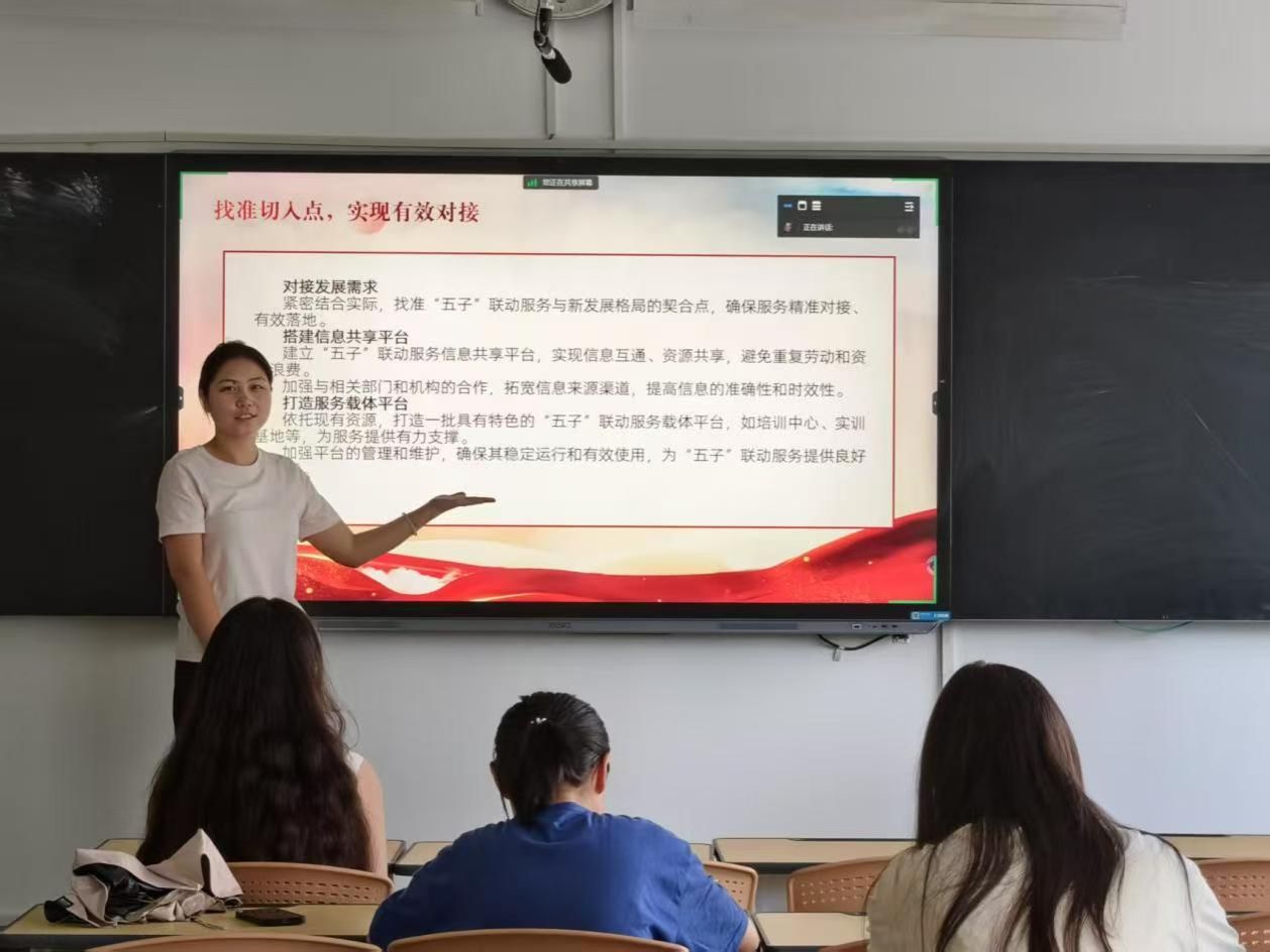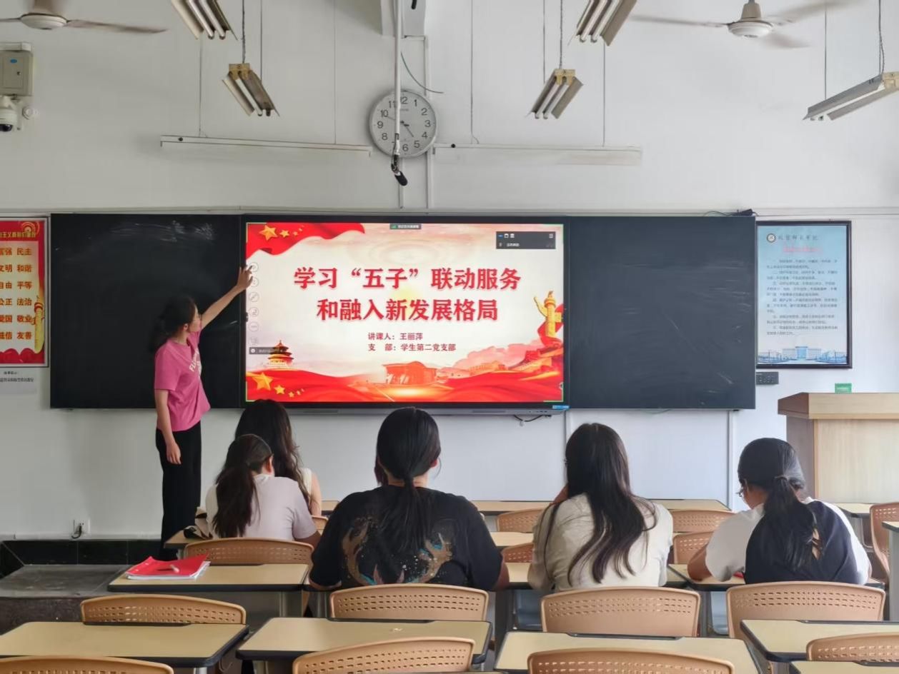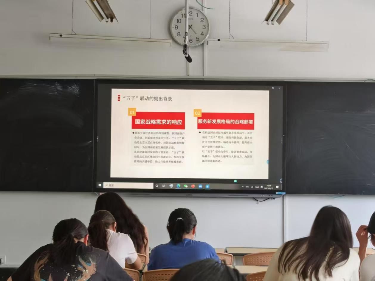 员工第二党支部王丽萍同志以学习“五子”联动服务和融入新发展格局为题,讲述战略背景、“五子”联动的核心要义、五大战略支点以及战略意义。“五子”即率先建设国际科技创新中心,抓好“两区”建设,建设全球数字经济标杆城市,以供给侧结构性改革创造新需求和深入推动京津冀协同发展。“五子”联动通过创新驱动、开放赋能、数字引领、供需协同和区域协调,形成多维度协同效应,助力北京构建新发展格局,实现高质量发展。