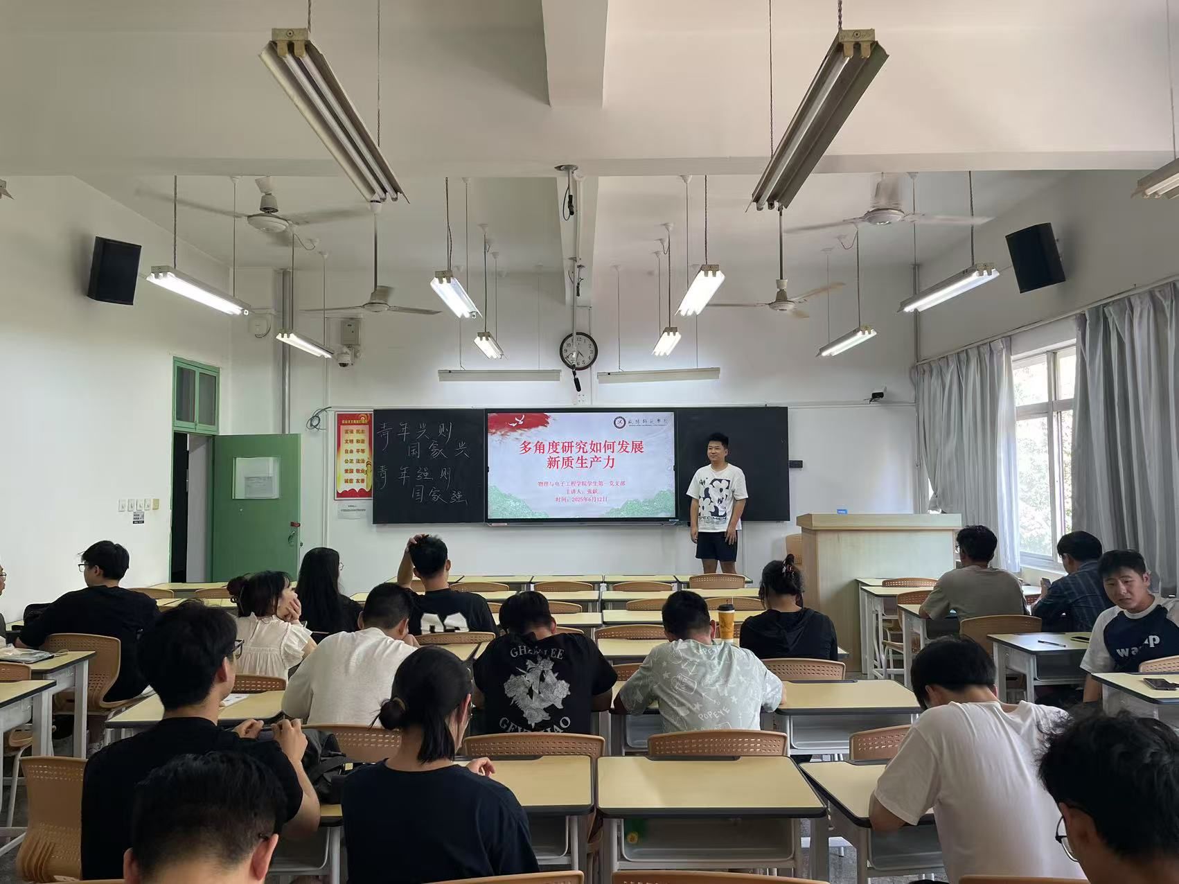 员工第一党支部张跃同志以《多角度研究如何发展新质生产力》为主题进行讲述。高质量发展是新时代的硬道理。我们具有制度优势、后发优势,有改革开放以来几十年积累的物质基础、教育基础、科技基础、人才基础。新时代新征程,要坚持一切从实际出发,抓住新一轮科技革命和产业变革的历史机遇。