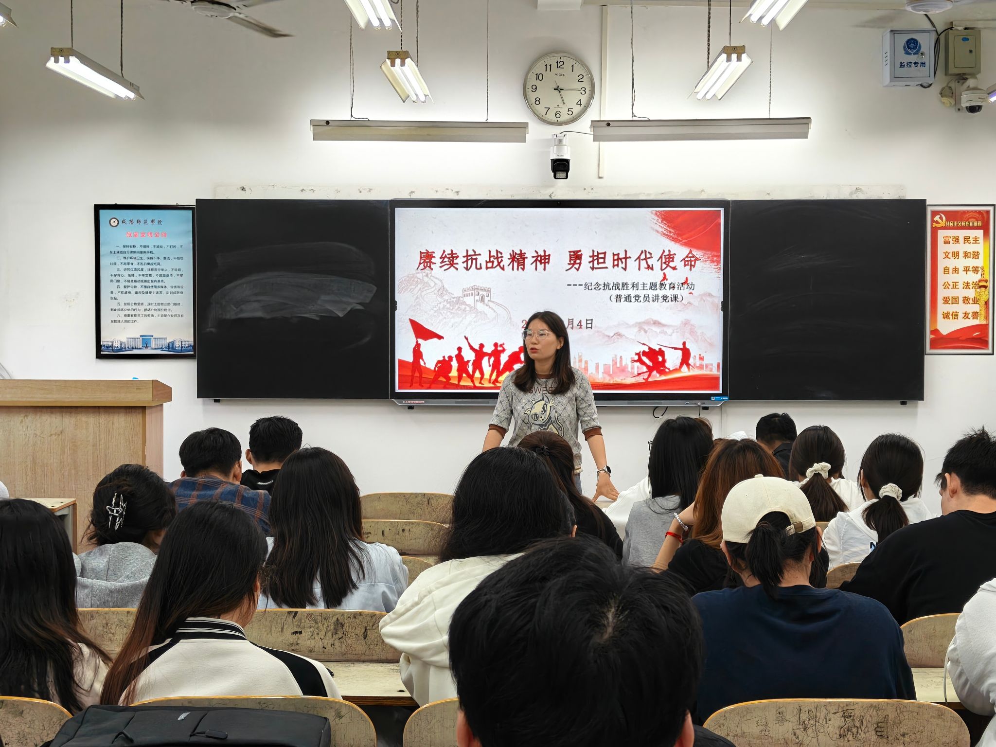 授课党员紧扣抗战历史与伟大精神,结合自身学习和工作实际,交流了新时代党员应当承担的责任与使命。活动中,全体党员积极参与讨论,反响热烈。