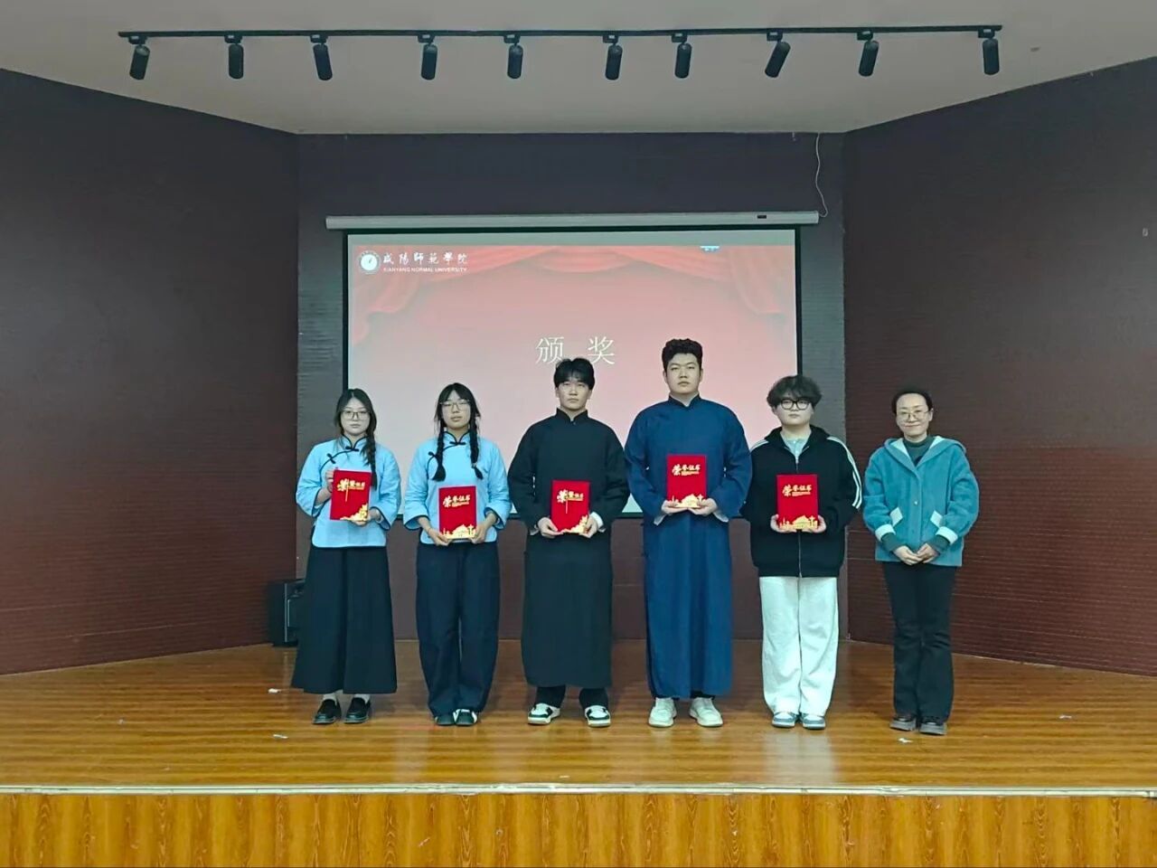决赛现场,同学们以真挚的情景剧表演,复刻峥嵘岁月,演绎初心使命,让观众在历史回响中感悟信仰力量,在角色共情中明晰使命担当。决赛遵循主题内涵、表演水平、舞台呈现、创意特色、时间把控等五大评分维度进行评比,评选出一等奖1组、二等奖2组、三等奖3组。评委为获奖队伍颁奖,见证荣耀时刻。