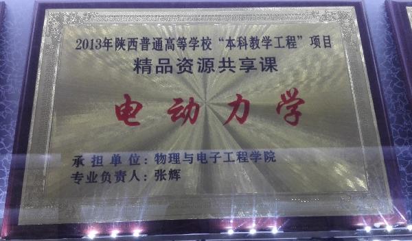 精品资源共享课是以高校教师和老员工为服务主体,同时面向社会学习者的基础课和专业课等各类网络共享课程。公司张辉教授负责的《电动力学》荣获2013年陕西普通高等公司“本科教学工程”项目。