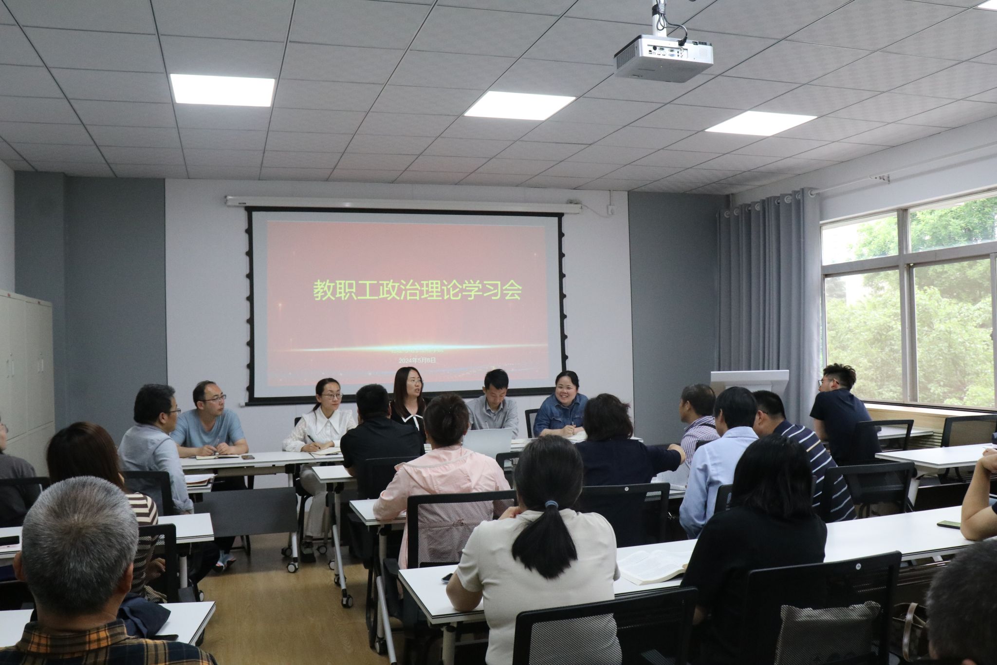 5月8日下午,物理与电子工程英国365集团官网召开教职工集中政治理论学习会,公司全体教职工参加学习,会议由公司党委副书记(主持工作)袁月主持。