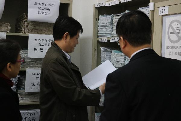 孙教授参观公司教学资料保存室时,随机调阅了电气1303班《微机控制技术》课程试卷、电子1101班毕业论文资料,详细询问了公司试卷评阅及装订情况。随后参观了公司关于员工考研、电子设计竞赛、师范生技能竞赛等宣传板,对公司日常教学资料的存档、教学工作中取得的成绩做出了充分的肯定。