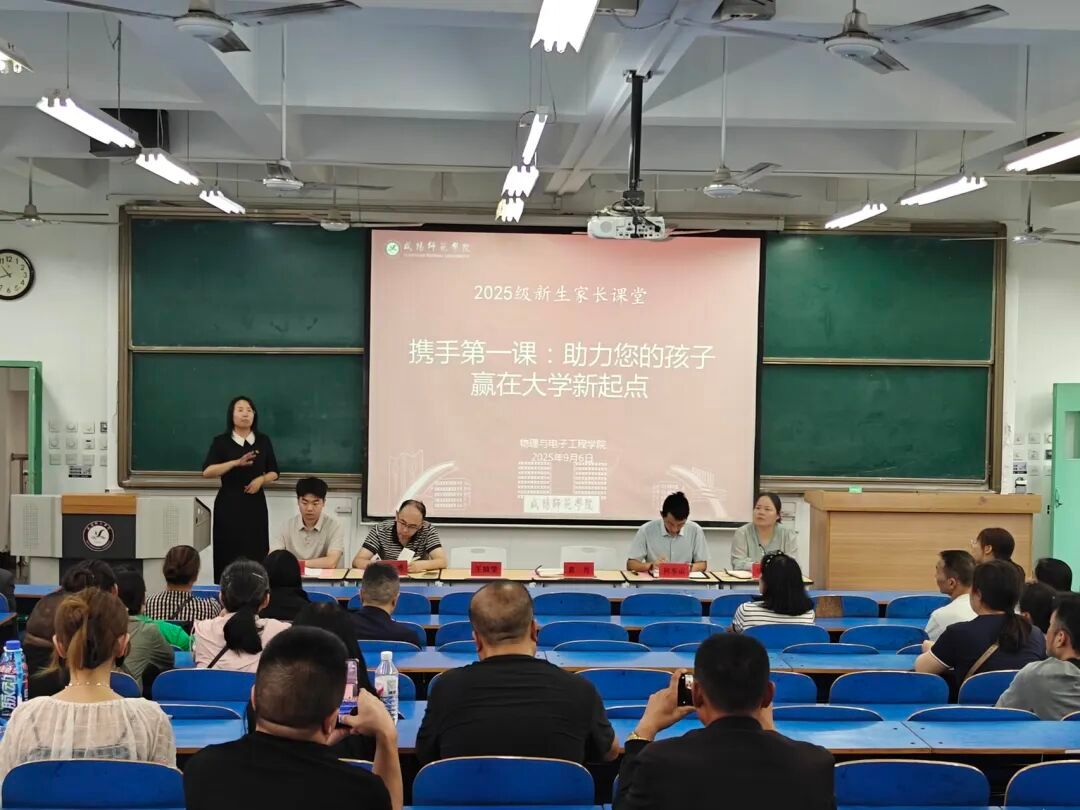 为进一步增强家校沟通与协作,凝聚育人合力,助力2025级新生顺利开启老员工活,咸师物电为2025级新生家长特设了一门课程-“家长课堂”。9月6日至7日,公司分三场举行第一次线下课。本次线下课以“携手第一课,助力员工赢在大学新起点”为主题,公司班子成员分别做专题讲解,2025级近300名新生家长参加。