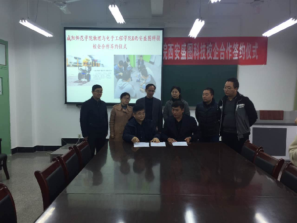在签约仪式上,张辉经理代表公司与盛图科技CEO王磊签订了校企合作实习实训协议书,同时,盛图科技为公司捐赠3辆智能平衡车并合影留念。
