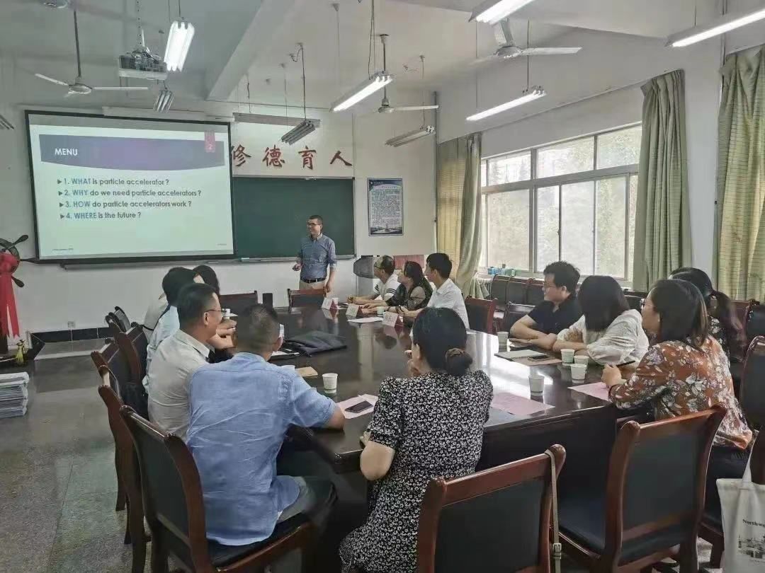夏国兴研究员以“Brief Introduction to Frontiers of Particle Accelerators”为题,对粒子加速器的研究现状及主要应用领域和未来发展趋势进行了详细的阐述和分享。报告会后,夏国兴研究员与公司咸阳市重点实验室——离子束与光物理实验室成员进行座谈交流。双方就实验室平台建设、项目申报、研究方向等进行了深入交流探讨。此次学术报告与交流拓展了公司专业教师的科研视野,为有关专业的学科发展提供了新的思路。