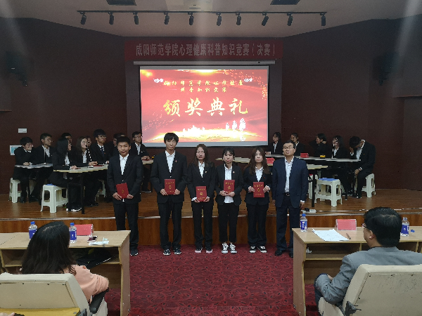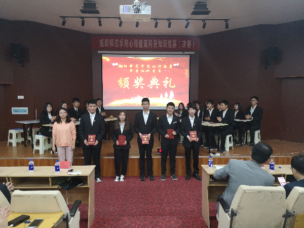 本次知识竞赛分初赛和决赛两个环节,在前期初赛过程中全校共有133名非心理专业的班级心理委员参加了笔试,共20名同学顺利进入决赛;在决赛中全体参赛选手精心准备,思维敏捷,经过必答题和抢答题等环节的激烈的比赛,邢浩伟等5名同学获得一等奖、黄燕等5名同学获得二等奖、李思懿等5名同学获得三等奖、房宇飞等5名同学获得优秀奖。