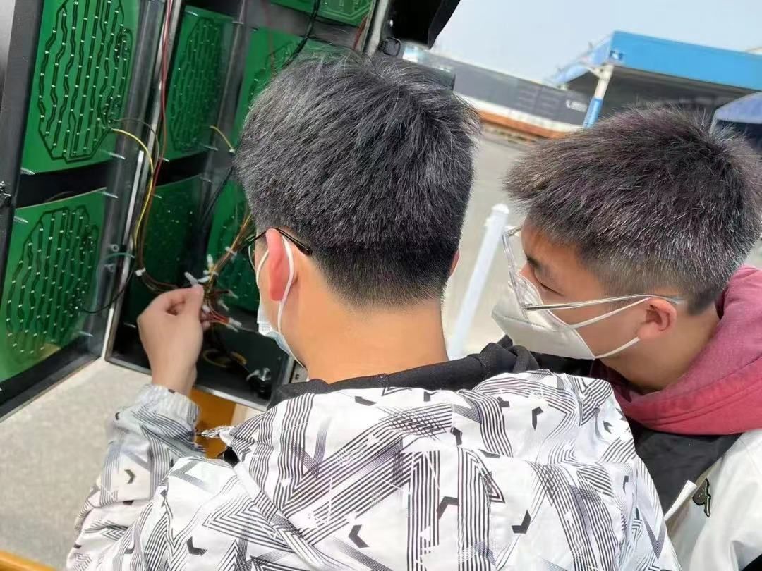 随后,张玉叶带领员工对西安伊利泰普克饮品有限公司交通信号灯控制装置进行调试,将自动控制信号灯装置调整为手动控制,使得行人过马路时只需按下圆形按钮,便可达到手动控制信号灯的效果;行人过街后信号恢复正常,信号启动和行人过街具有相应的时间间隔,车、人两不干扰,即方便又安全,科学地实现了人车双赢。