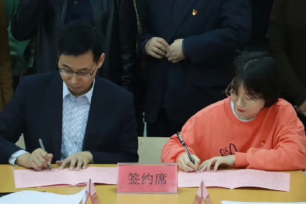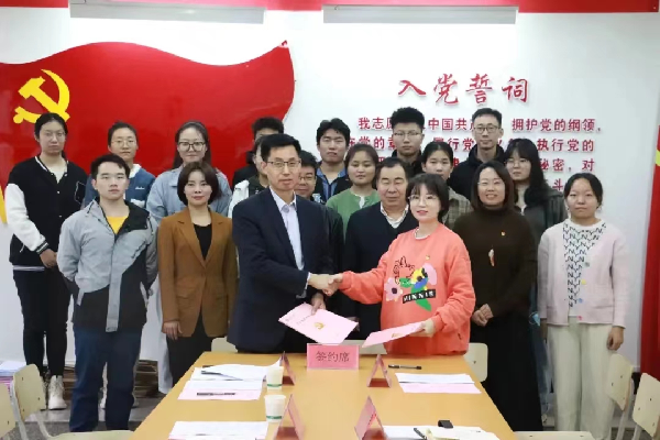 在全体党员的见证下,机关党委第八党支部书记、人才招聘处处长张高科和公司党委员工第三党支部书记张露共同签订了结对共建协议。