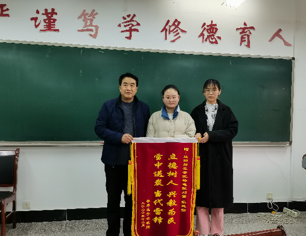 12月28日,公司英国365集团官网迎来一位特殊的客人。来自咸阳市秦都区的李秀兰老人子女带一面写有“立德树人 兴教为民 雪中送炭 当代雷锋”的锦旗和一幅写有“教书育人 功德无量”的字画送到公司,寻找物理学1904班刘童、1801班张亚茹同学,感谢她们在自己母亲走势期间给予的帮助和无私的关爱。