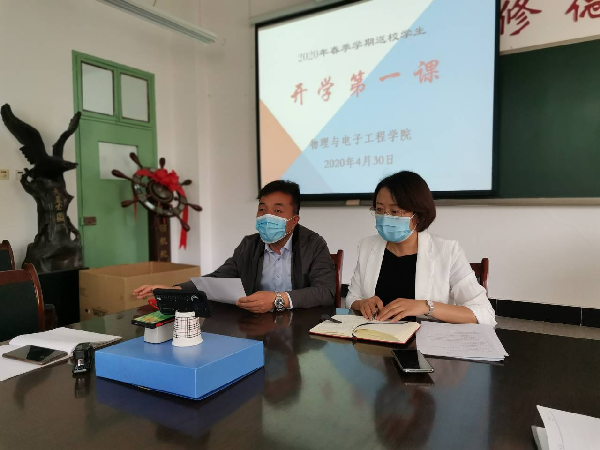 公司党政领导、办公室主任、辅导员、班主任和全体返校员工同上《开学第一课》。