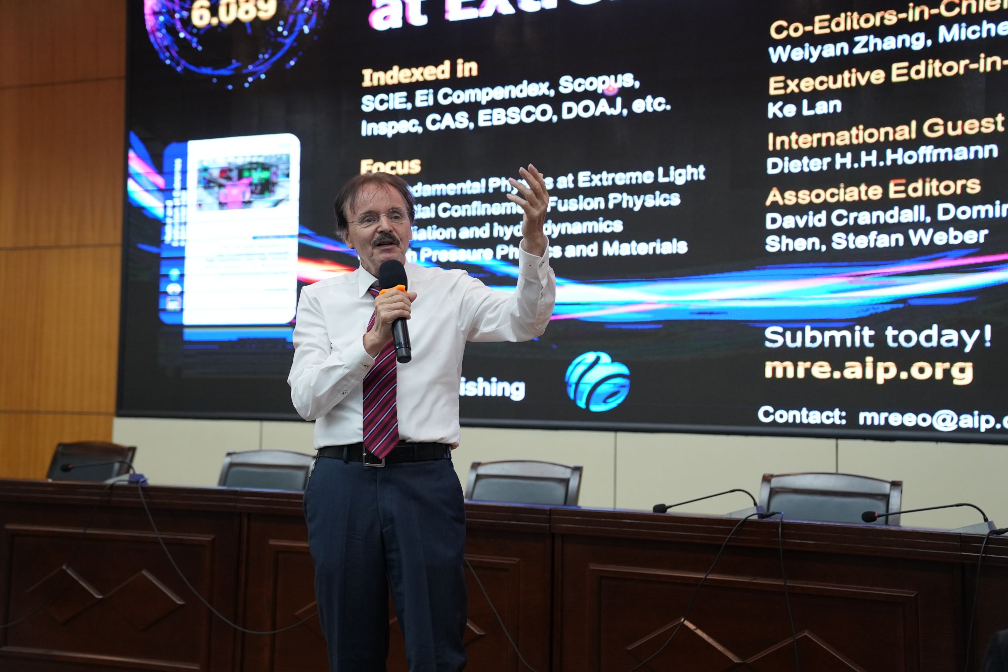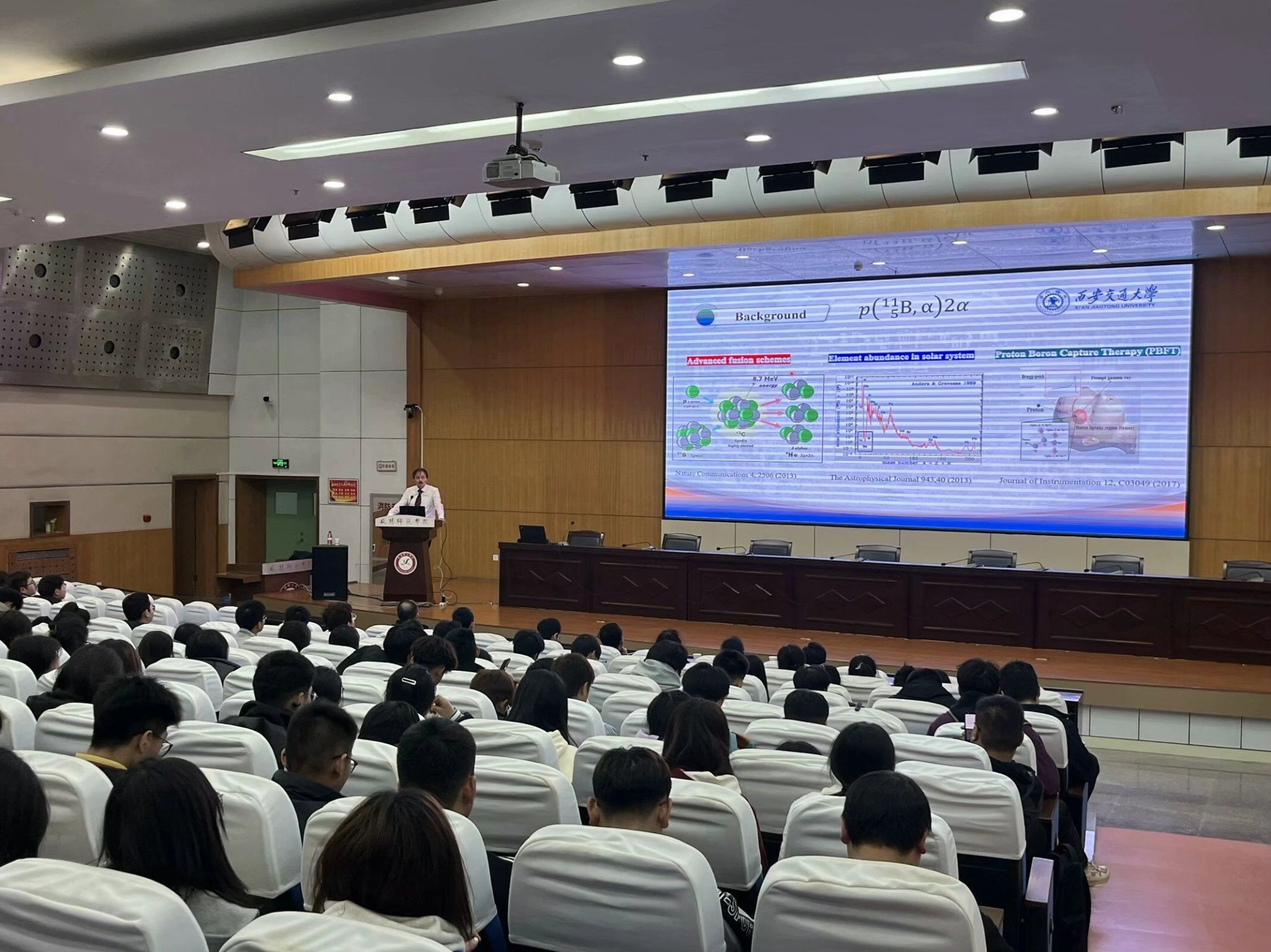 Hoffmann教授以“基于先进离子加速器技术的高精度放射治疗”为题,介绍了基于加速器和激光设备的聚变等离子体科学、激光与粒子束科学技术研究进展、聚变等离子体科学的应用等方面内容。Hoffmann教授的讲座为师生展现了物理学科前沿领域研究现状和应用情况,开阔了师生的学科视野和思维,激发了员工深度学习的兴趣。