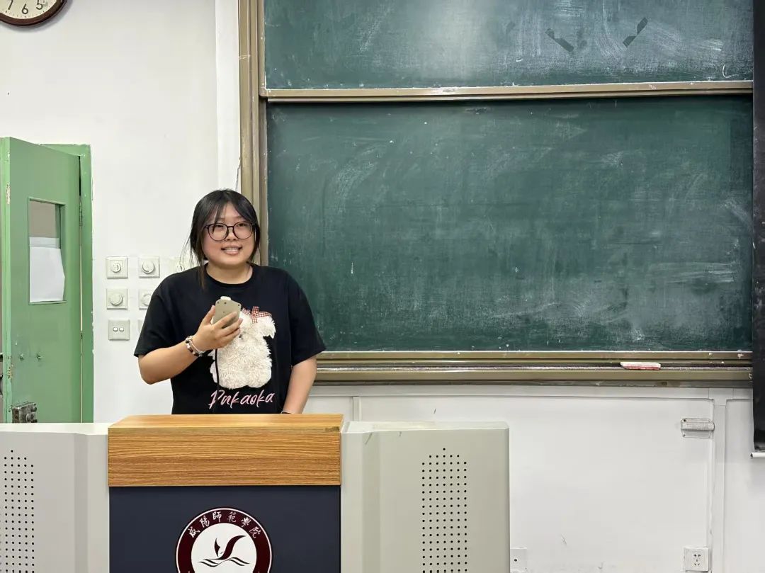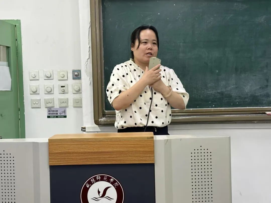 实习指导教师张艳宁发言。她讲到见证同学们从初登讲台的青涩到如今的从容自信,从理论知识的掌握到教学实践的融会贯通,用创新实验诠释物理之美,用科学思维启迪中员工智慧,让大家看到了未来物理教师的无限潜力。希望同学们坚定从教信念,在实践中不断锤炼教学技能,努力成为科学思维的引路人,用物理学的光芒照亮更多求知的心灵。